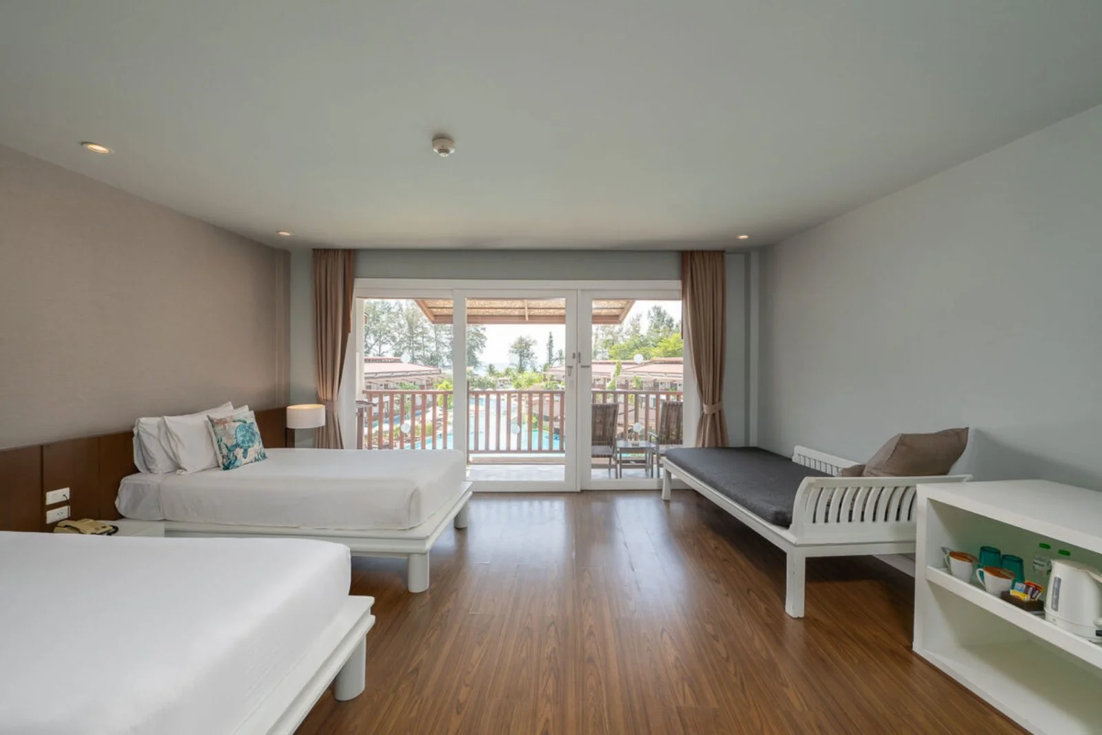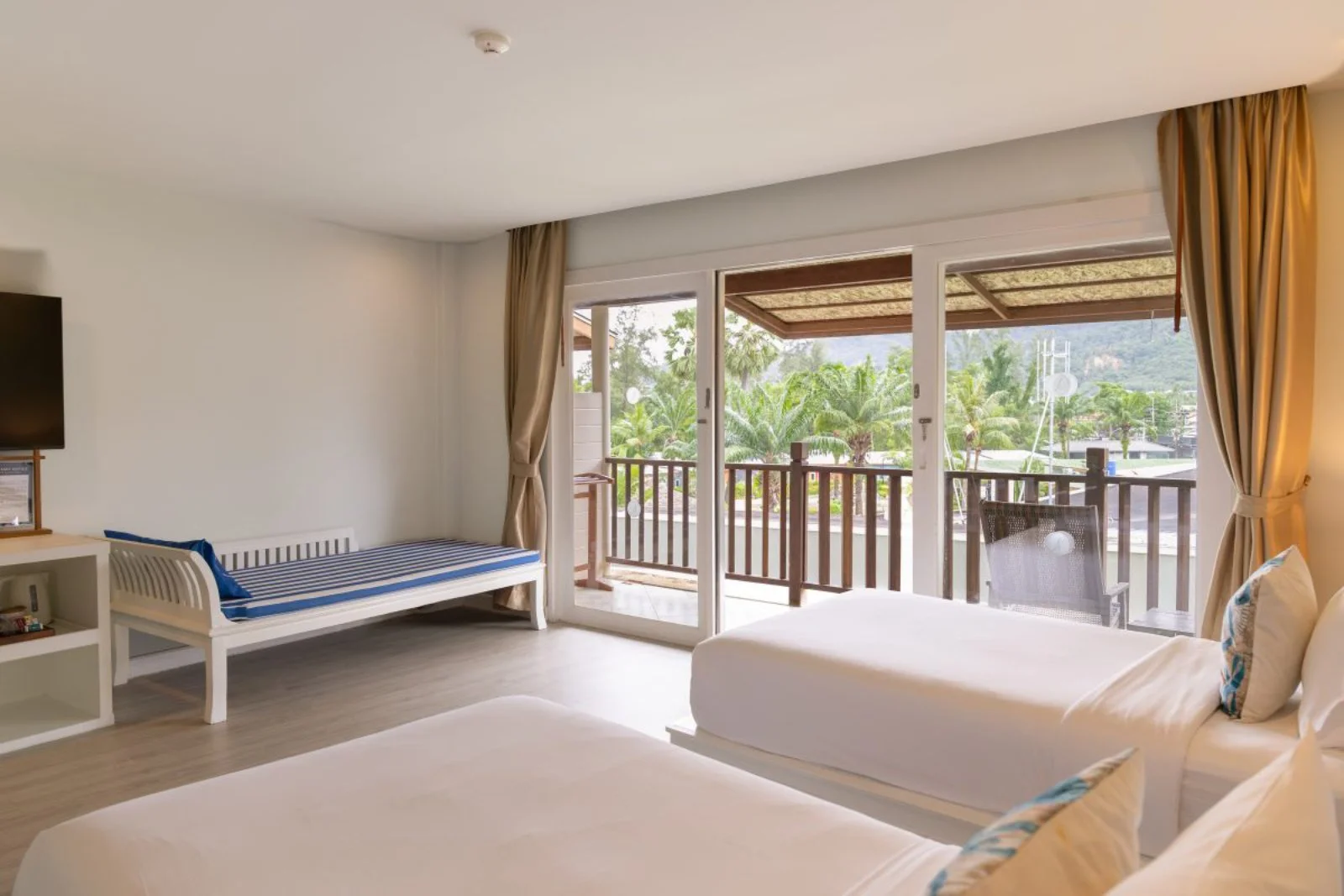 Il complesso ospita 202 sistemazioni, ampie e confortevoli, con vista sui giardini o sulla piscina. Le camere premium garden view, con dimensioni di 50 mq, sono arredate con un design asiatico contemporaneo e dotate di balcone con vista sul giardino; le camere premium pool view, di 50 mq, sono dotate di letti king size o due letti twin, con balcone vista piscina; le camere deluxe garden view, di 50 mq, sono ubicate al secondo piano dell’edificio con vista sui giardini o sulla piscina e possono ospitare fino a 4 persone in due letti matrimoniali separati king size (ideali per tre adulti o due adulti e due bambini o tre adulti e un bambino). Vi sono altre tipologie di sistemazione (con dimensioni maggiori fino a 78 mq), alcune delle quali ubicate a piano terra e con accesso diretto alla piscina condivisa.