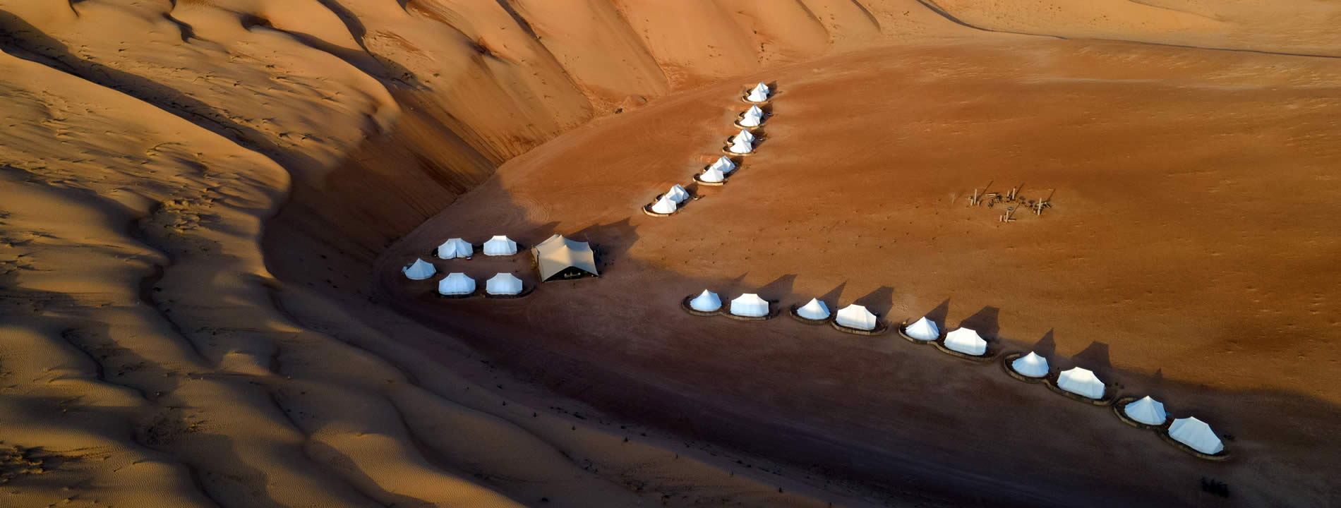 Meraviglioso campo tendato situato nel cuore del deserto di Wahiba Sands, il leggendario deserto omanita, per chi vuole vivere un’esperienza da mille e una notte.